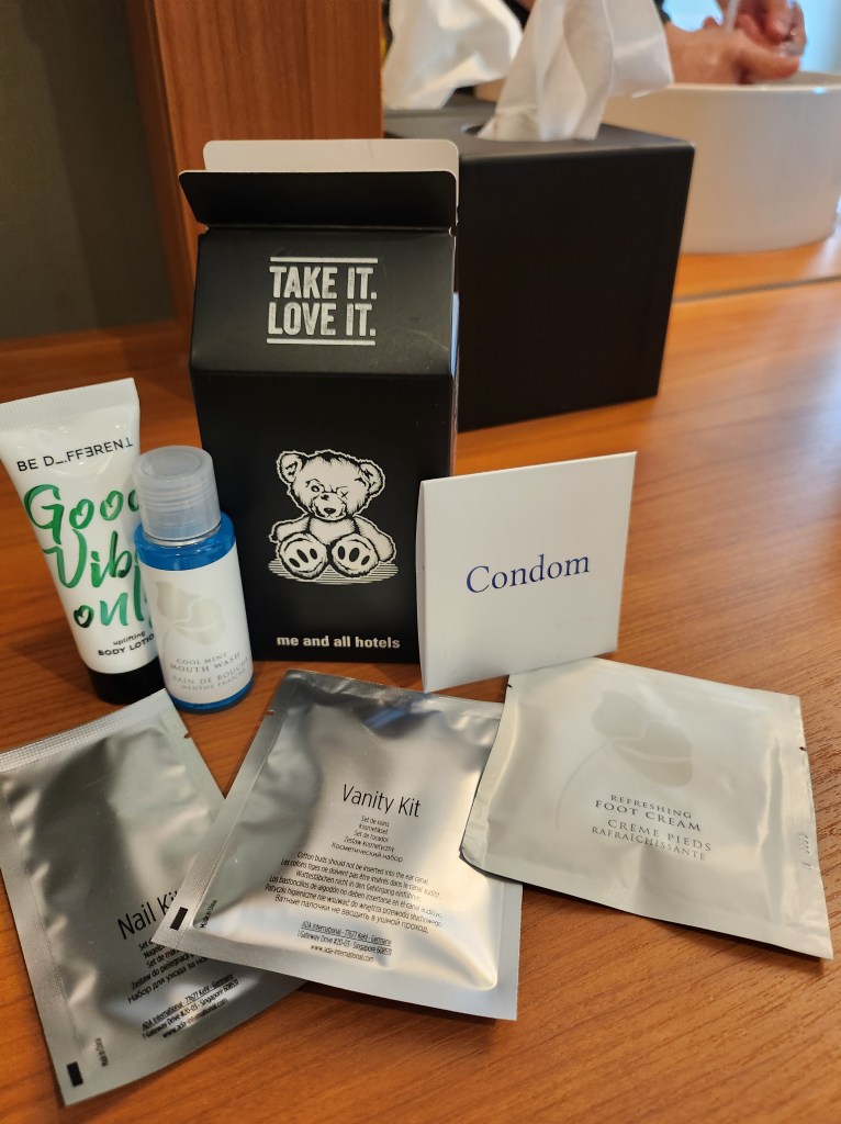 Out of all the many things our Superior Double Room had provided, the star of the show for me was their adorable amenity kit (which I obviously took home), which came shaped like a milk carton featuring a cute teddy bear design, and included products such as body lotion, mouth wash, and even a condom, sadly denying kids the opportunity to brag to their friends that they were conceived at THE me and all hotel in Düsseldorf (an absolute shame).