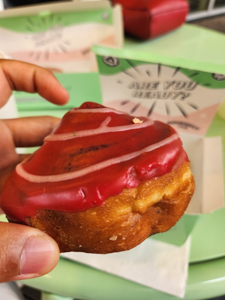 Doughnut Time offers a daily surprise donut/doughnut, and me being the fearless risk-taker that I am, went for the jump and got the most interesting donut/doughnut that combined coffee and raspberry… And it was actually pretty good! I’m not quite sure if you can specifically request for this fun donut/doughnut at the store, but if you can you have to try it and see for yourself!