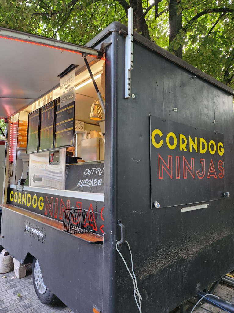 Us being the Korean corn dog fiends that we were, we went on a little taxi ride all the way to the Berlin Ostbahnhof, and walked a “little” more (my friends will definitely say that we have our own definitions on what a “little walk” means) to a food truck park to get ourselves a bite of the deservingly popular Korean snack at Corndog Ninjas.