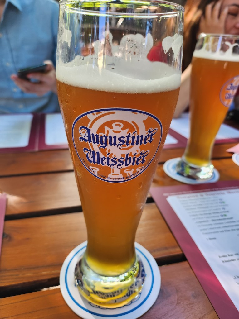 I washed down the schnitzel with a sizable glass of Augustiner Weißbier (“White Beer”), which was crisp but also yet very smooth compared to most beers I’ve had thus far.
