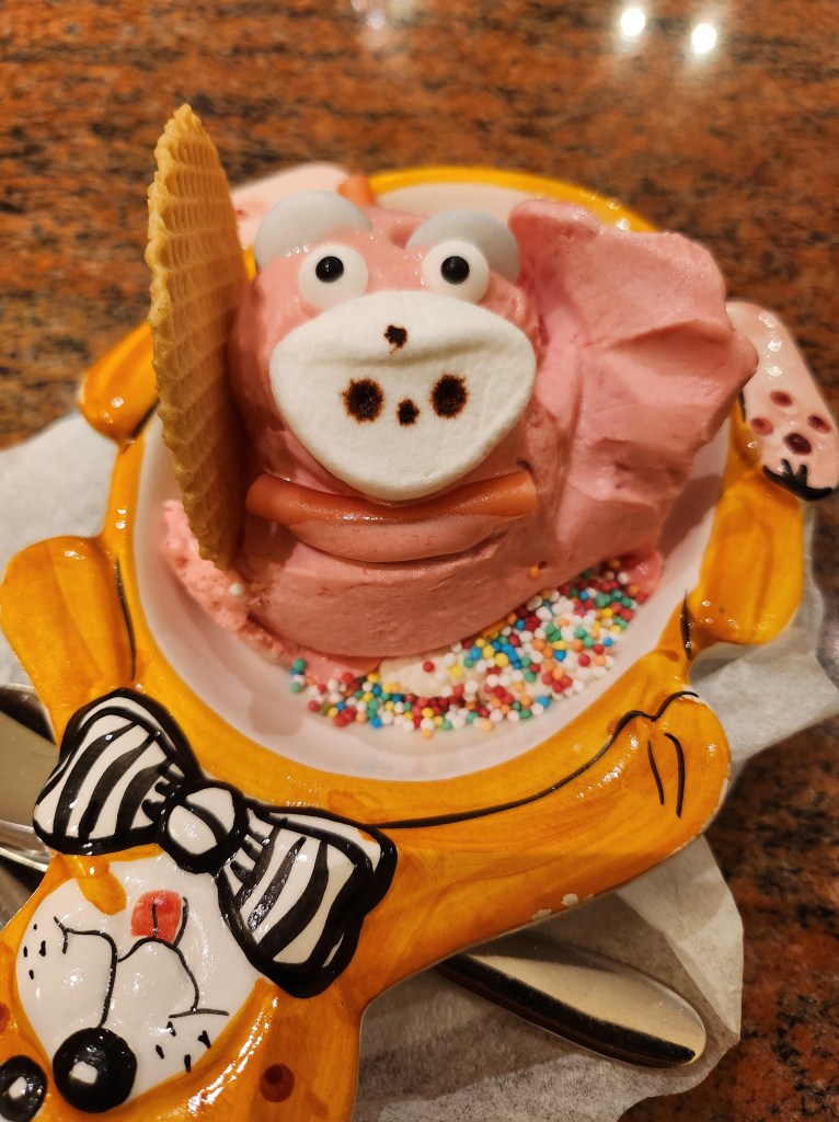 It was time for dessert after a lovely BBQ dinner at Shao Khao Munich (forgive me, I unfortunately was a little too engrossed with the deliciousness of the food and with making conversation with new friends who hailed from parts far away from the land of Deutschland), so we headed to Café Al Teatro for some ice cream to beat the heat. Being the manchild that I am, I ordered the Peppa Pig sundae from the kids menu, which made the server let out a hearty laugh, much to my embarrassment (in their defense, who WOULDN’T?!)! Back to the Peppa Pig, it was a simple and sweet strawberry gelato sundae which had candy, sprinkles, and whipped cream, which meant it was perfect for the likings of a child (and a manchild)!
