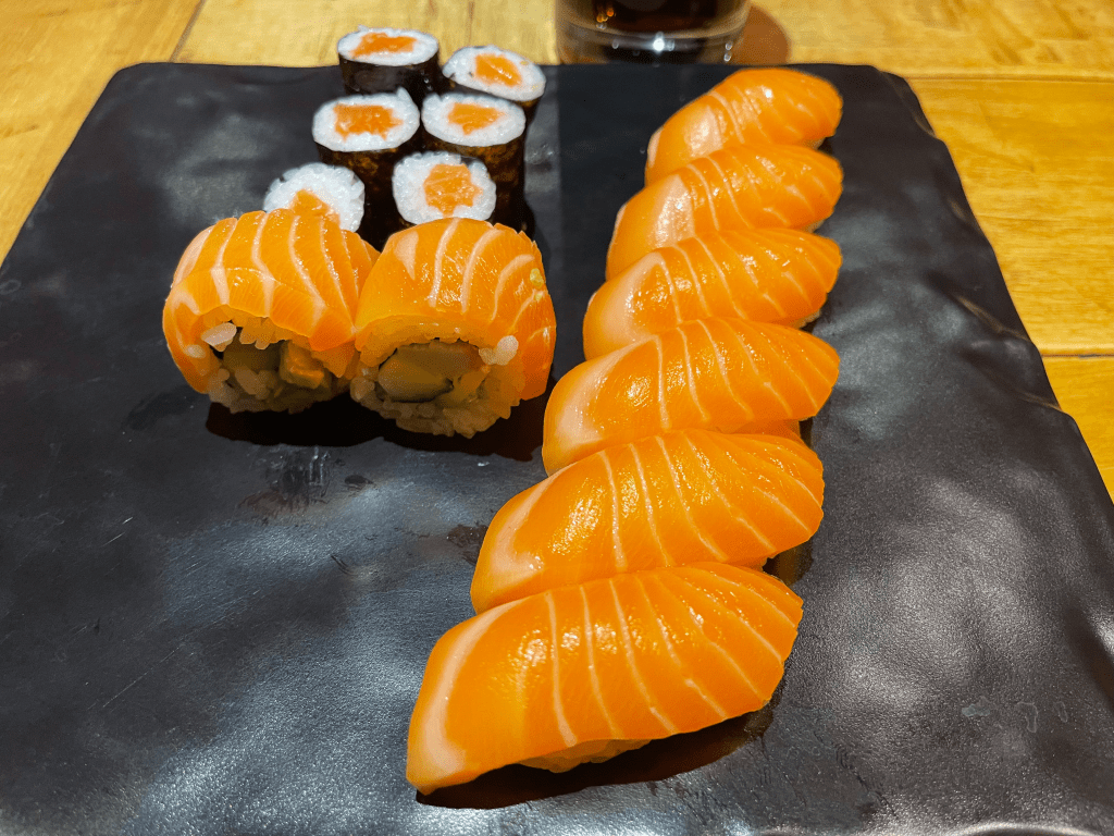 We had a light sushi dinner at the Nagoya Japanisches (meaning “Japanese”) Restaurant, and I had ordered the Salmon set, which was simple and decent, but something about it left us wanting more however…