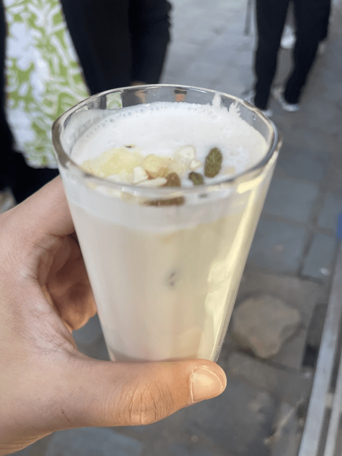 I always make it a point to hit up the iconic Janakpur Dahi Lassi Bhandar whenever I’m in Kathmandu and get myself a big glass of their deliciously smooth and creamy Dahi Lassi! It’s pleasantly sweet, and the yogurt is of such good quality, and on top of that (literally in this case), the toppings of chopped nuts and raisins bring a wonderful texture and nuttiness to the drink, which is very much welcome.